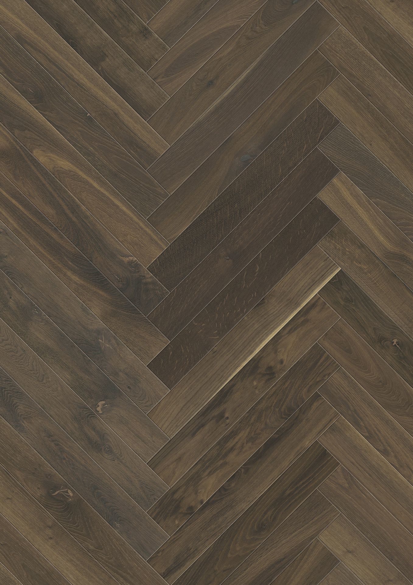 Die Villa-Sortierung (Markant) bringt das ehrliche Wesen der Eiche zum Vorschein. Natürliche Wuchsmerkmale und Strukturunterschiede sorgen dafür, dass die dunkle Fläche trotz ihrer Farbtiefe lebendig und authentisch wirkt. Die 4-seitige Fase (V4) umrahmt jeden einzelnen Stab und sorgt für eine plastische Betonung des Verlegemusters – ein entscheidendes Detail für die hochwertige Optik bei dunklen Böden.